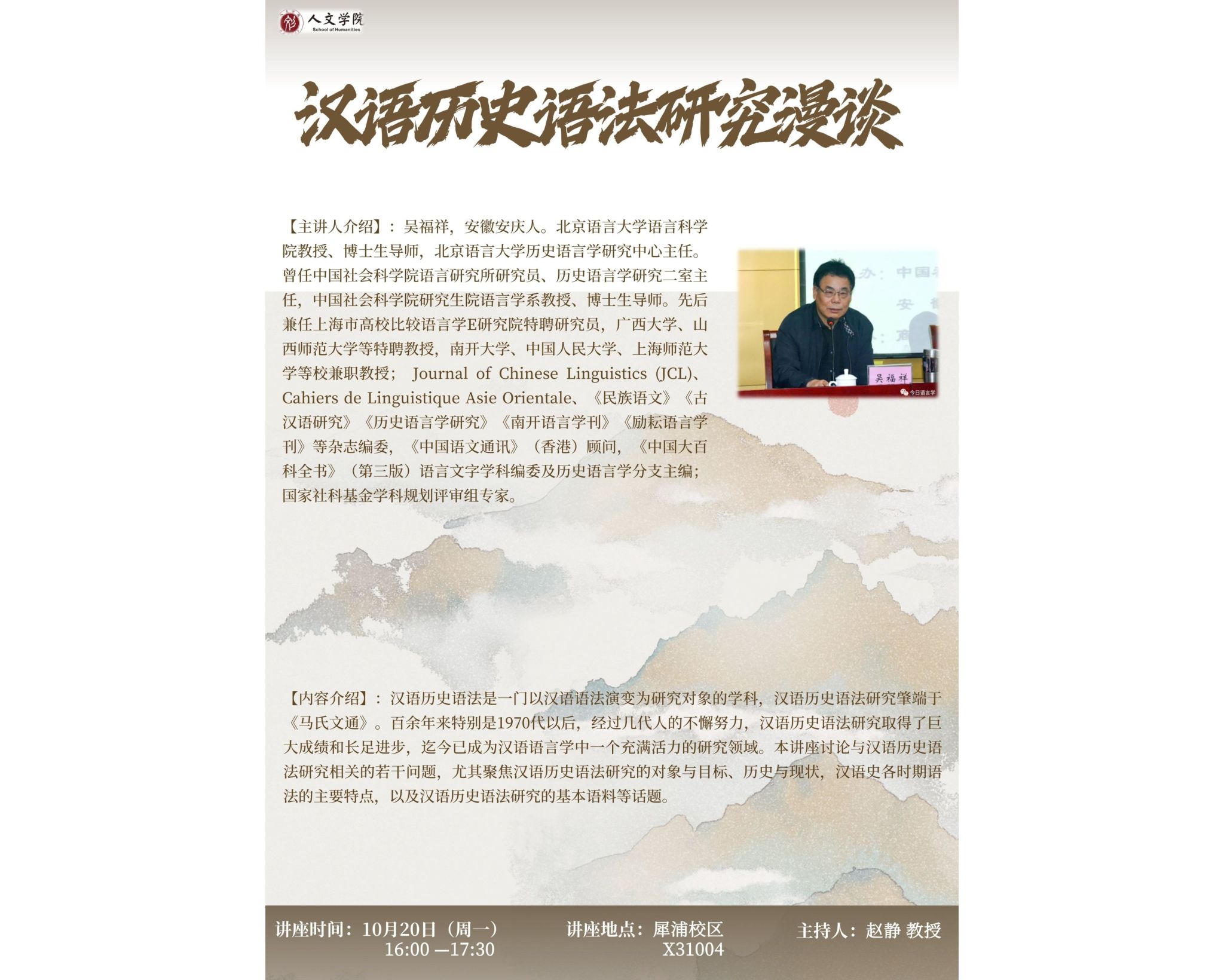 主讲人:北京语言大学语言科学院 吴福祥教授讲座时间:2025年10月20日(周一) 16:00-17:30讲座地点:犀浦校区X31004会议室主办单位:色花堂 主持人:色花堂 赵静教授