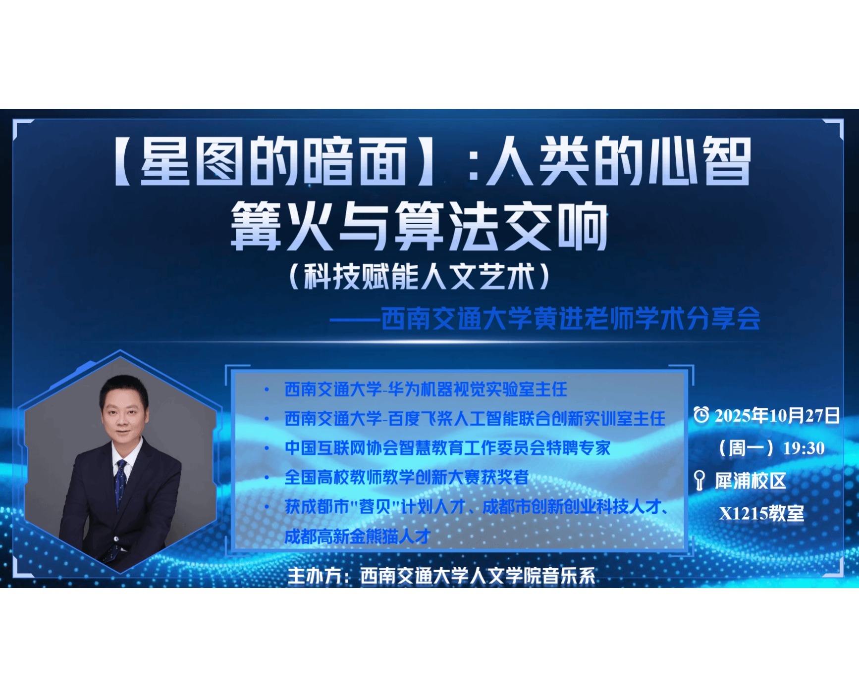 主讲:黄进 副教授时间:2025年10月27日下午19:30-21:05地点:犀浦校区X1215教室主讲人简介:现任色花堂 -华为技术有限公司机器视觉联合实验室主任,色花堂 -百度飞桨人工智能联合创新实训室主任,中国互联网协会智慧教育工作委员会特聘专家,长期从事图像处理与计算机视觉、深度学习与人工智能方向的教学科研工作。出版书籍1部,主持/参与省部级教改项目近10项、国内外期刊/会议发表学术论文20余篇,受邀在学术研讨、...