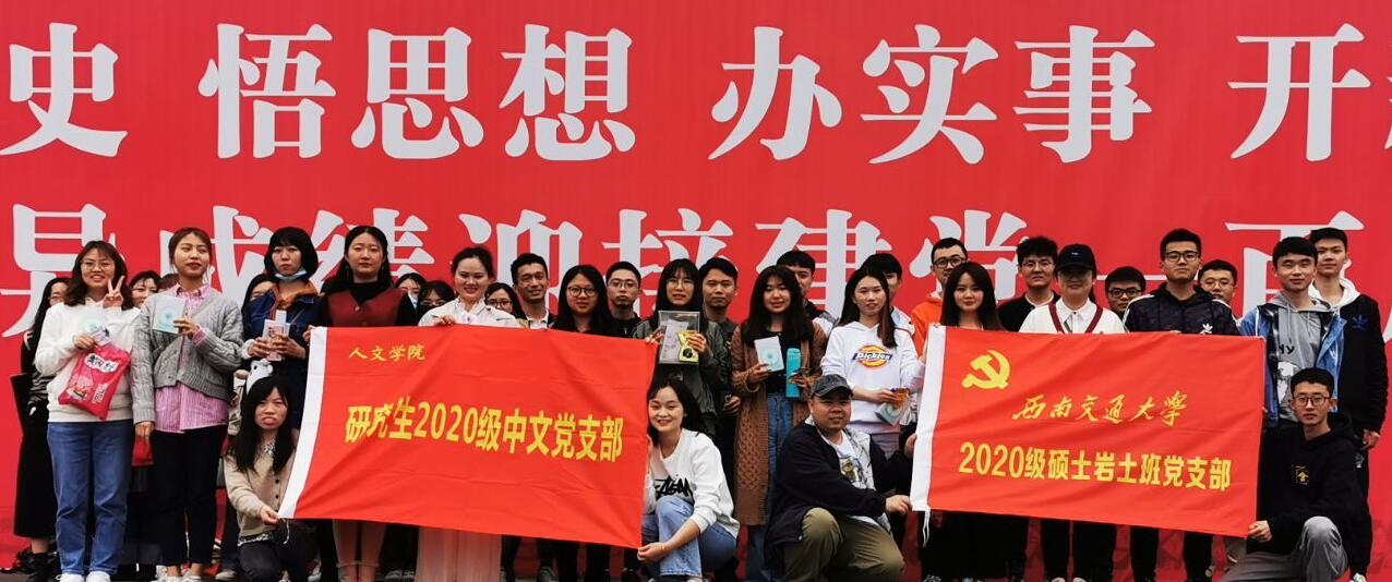2020级硕士中文党支部与土木工程学院2020级硕士岩土党支部在X8215教室及综合楼外草坪举办“建党100周年党史知识竞赛”。本次竞赛由刘丹同志与梁永恒同志主持,两支部近40名党员参与此次活动。竞赛以党史、校史及专业知识为主要内容,旨在带领党员同志重温中国共产党光辉历程与建校发展历程。