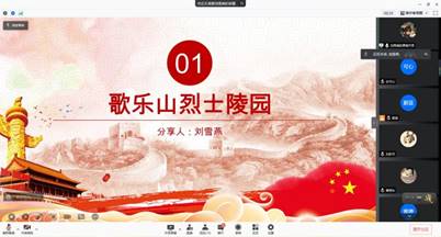 2021年12月9日下午4:00,本科汉语党支部依托“腾讯会议”APP,线上组织开展献礼中国共产党成立100周年系列活动——家乡红色基地打卡汇报,此次汇报由第六小组负责,汇报共分为三个部分。本次会议由魏岚同志主持,支部全体成员参与学习。