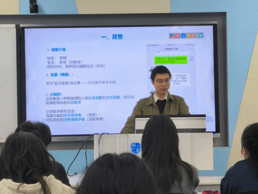 研2022级哲学专业学生李翔从自身专业实践出发,结合《实践论》和自己的田野调查经验,提出做学术要注重感性认识和理性认识相结合、注重认识来源的可靠性。他鼓励大家:“要时刻保持一颗清醒的头脑,以及实事求是的精神。”