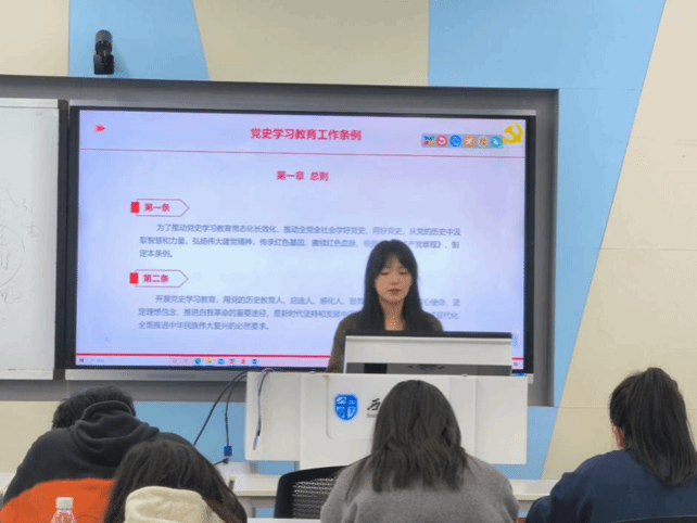 随后,王艺橙又领学了《党史学习教育工作条例》,包括总则、领导体制和工作职责、党史学习教育的内容、党史学习教育的主要方式、保障和监督以及附则。她还提醒各支部要充分利用“三会一课”、主题党日、观看纪录片等形式,切实做好党史学习教育工作,努力把党史学习教育融入日常、抓在经常。最后,王艺橙组织与会同志一同学习了怀进鹏同志在《求是》杂志发表的署名文章《厚植爱国情怀 培育时代新人》。