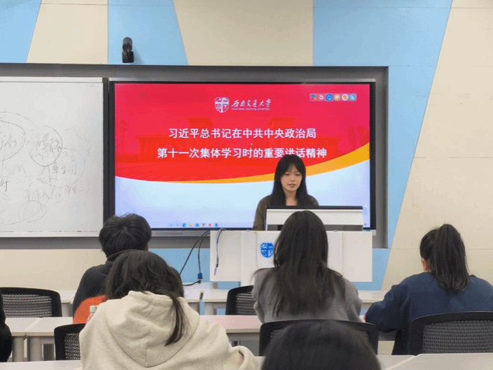 理论学习环节由研2023级中文党支部书记王艺橙领学。王艺橙首先带领大家学习了习近平总书记在中共中央政治局第十一次集体学习时的重要讲话精神,强调要深刻认识新质生产力已经在实践中形成并展示出对高质量发展的强劲推动力、支撑力。