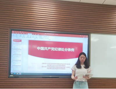 接下来,万心怡同志对开展党纪学习教育的主要工作安排进行了介绍,支部将通过个人自学、集中学习等方式扎实开展学习教育。万心怡同志强调,本次党纪学习教育对提高各位党员的党性修养至关重要,要求支部同志们在学习期间积极参与主题党日、读书班等集体研讨活动,逐渐加深对《中国共产党纪律处分条例》的理解。