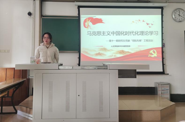 研2024级党支部在九里校区J4320教室开展了马克思主义中国化时代化理论学习活动。本次活动由龙欣雨同志主持,支部全体成员参与学习。