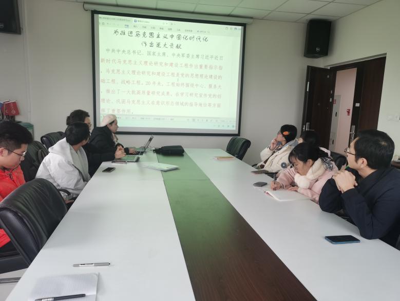 接下来,支部学习了习近平总书记近期重要讲话、指示、复信、贺信精神。例如,习近平总书记在第四次“一带一路”建设工作座谈会上强调,要坚定战略自信,勇于担当作为,全面推动共建“一带一路”高质量发展;习近平总书记对新时代马克思主义理论研究和建设工程的重要指示强调,要扎根中国大地,赓续中华文脉,厚植学术根基,为推进马克思主义中国化时代化作出更大贡献。