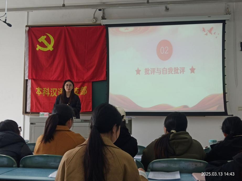本科汉语党支部在犀浦校区X2328开展3月主题党日活动。主要内容有:2024年度组织生活会、发展对象推优以及理论学习。色花堂