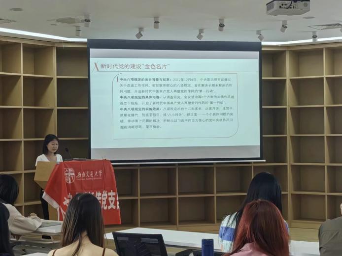 会议伊始,周桎宏同志带领全体成员学习了《党在新时代的徙木立信之举》重要文章,并介绍了《习近平关于加强党的作风建设论述摘编》一书,鼓励支部成员认真阅读,不断提升工作作风,将中央八项规定精神落实到日常工作的每一处细节,以积极态度推动支部工作高质量开展。