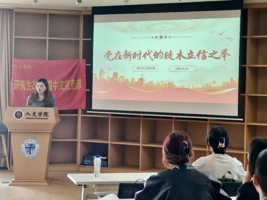 2025年4月24日下午,研究生2023级中文党支部与中文教师党支部在犀浦校区X31022开展联动学习会议。本次会议由中文教师党支部书记吴德利同志和研究生2023级中文党支部书记王艺橙同志共同主持,两支部全体成员到会学习。