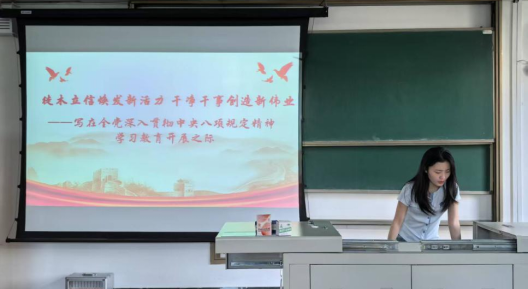 柴亚鹏、冯欣娅、韩旭同志分别领学了《新时代加强党的作风建设的锐利思想武器——学习习近平总书记关于加强党的作风建设的重要论述》《以作风建设新成效开创高质量发展新局面》《精心谋划求实效 凝心聚力树新风——教育部直属高校全面启动深入贯彻中央八项规定精神学习教育综述》,对加强党的作风建设进行了全面而深入的解读。通过学习,支部成员进一步加深了对中央八项规定精神的理解,增强了践行作风建设的自觉性和主动性。随后,刘珂宇同志领学了习近平总书记近期重要讲话精神。引导大家深刻领会习近平总书记关于文化建设的重要指示。