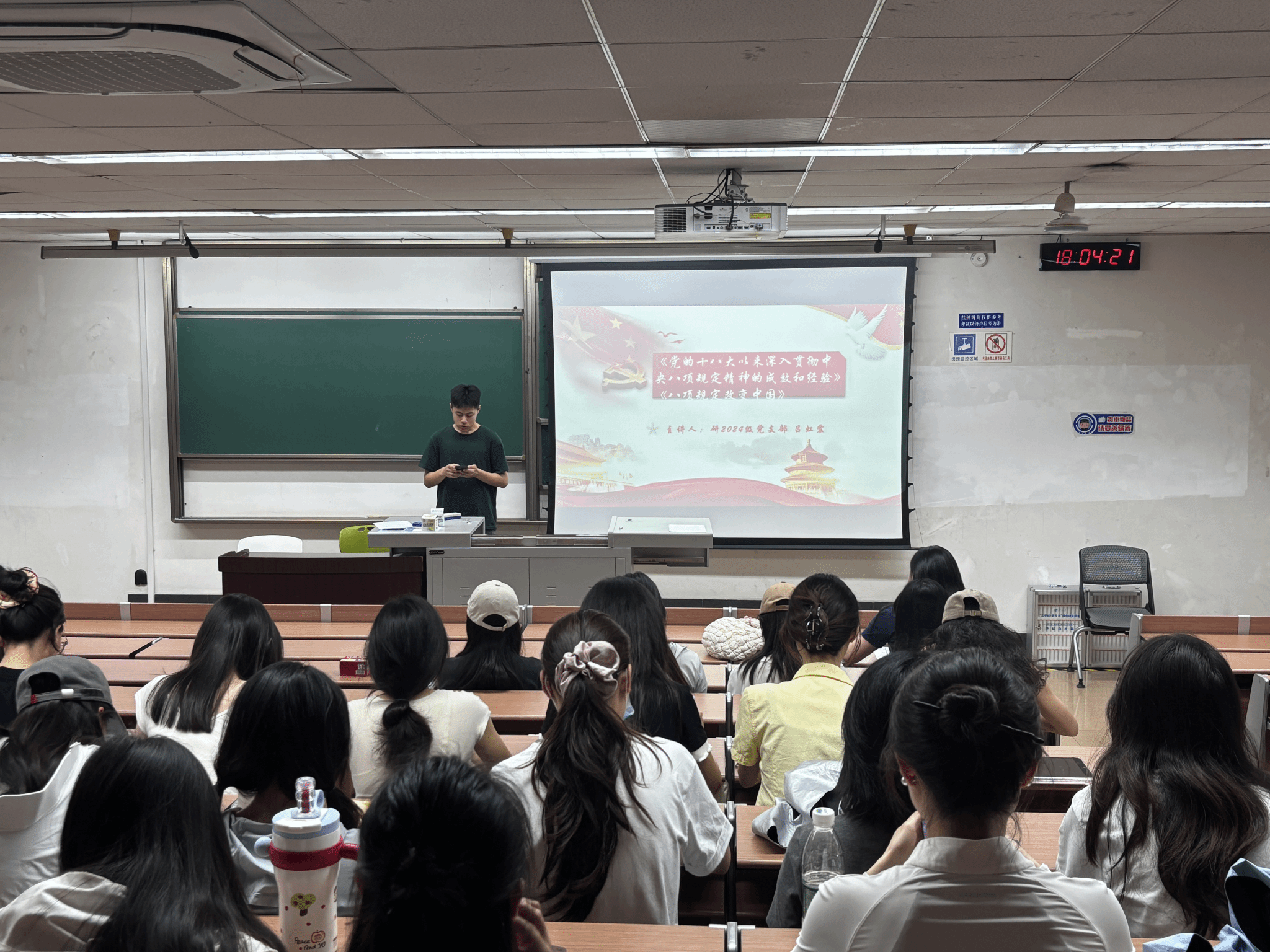 会议伊始,研2024级吕虹震同志带领全体与会成员深入学习了《党的十八大以来深入贯彻中央八项规定精神的成效和经验》以及《八项规定改变中国》两篇重要文章。他系统梳理并重点阐释了党的十八大以来,以中央八项规定为肇始,全党上下持之以恒正风肃纪所取得的显著成效和积累的宝贵经验。