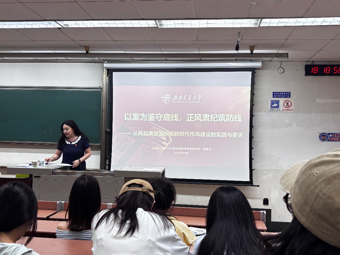 研2022级传播哲学党支部、研2023级传播哲学党支部、研2024级党支部在九里校区J4210联合开展6月主题党日活动,本次活动由研2022级传播哲学党支部书记王超同志主持,各支部成员进行了深入学习与交流。