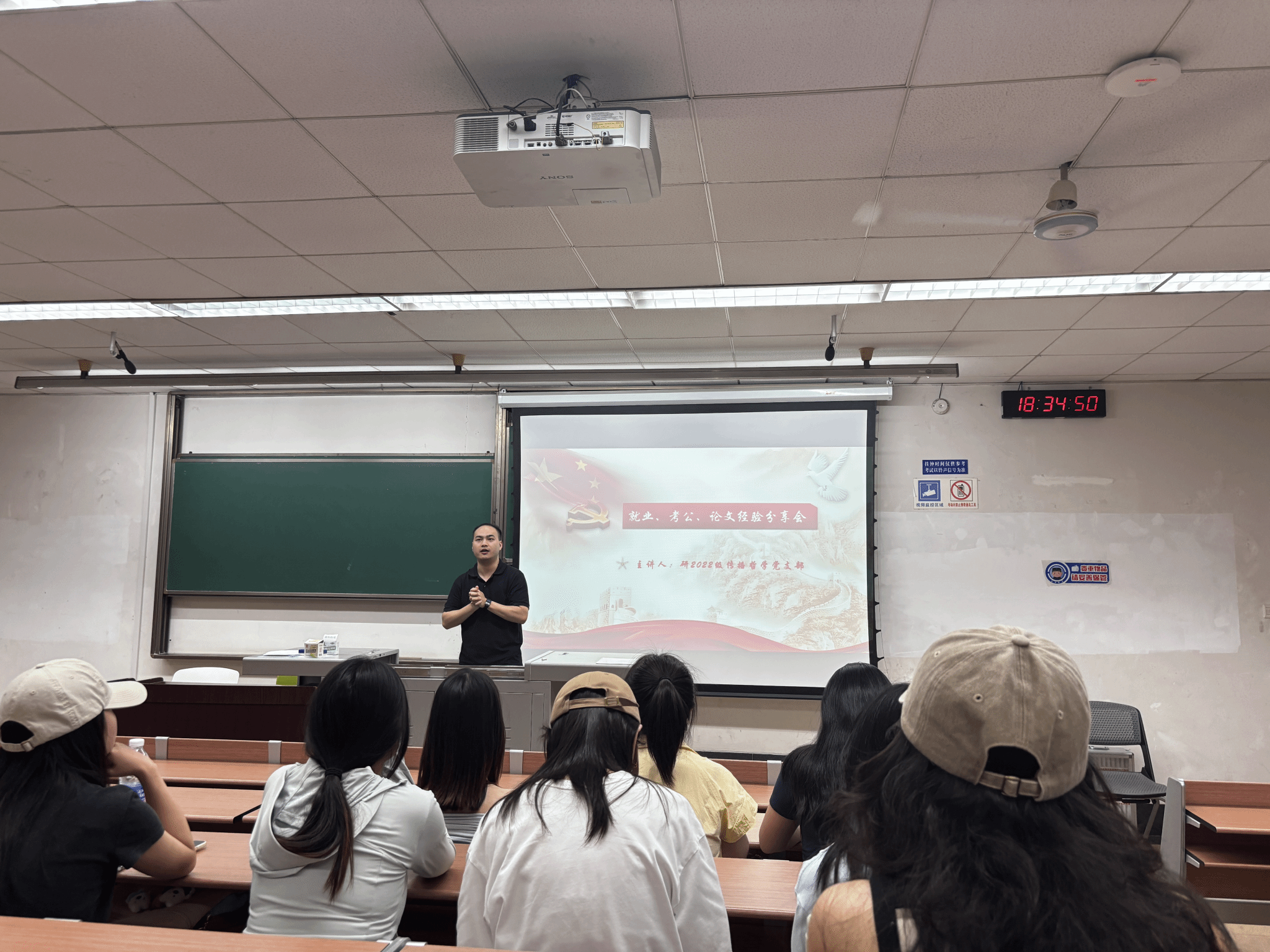 在会议的最后环节,聚焦党员个人发展与学业规划,研2022级传播哲学党支部精心组织了经验分享会。党支部书记王超结合自身实践,详细介绍了求职过程中的信息搜集、面试技巧以及不同行业岗位的选择考量与职业规划路径。马尔灿同志立足于个人经验,深入分享了对接地方“人才引进”计划的全流程要点;刘娄同志系统梳理了其备战公务员考试的心路历程与高效方法;何欣芮同志则聚焦学业核心,分享了其高质量完成毕业论文的经验心得。在互动环节,2024级研究生、2023级研究生积极向学长学姐提问,现场讨论氛围热烈。