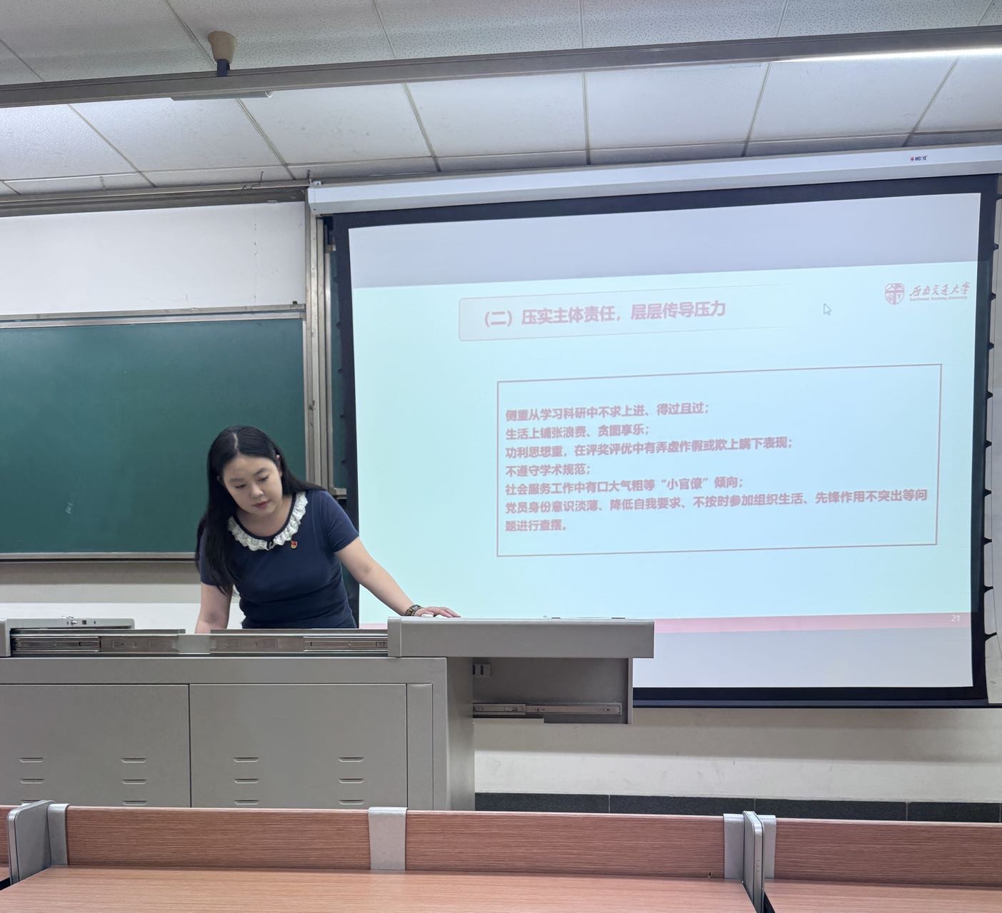 会上,张馨月同志以“以案为鉴守底线,正风肃纪筑防线——从两起典型案例看新时代作风建设的实践与要求”为主题,结合近期通报的典型案例展开深度讲解。