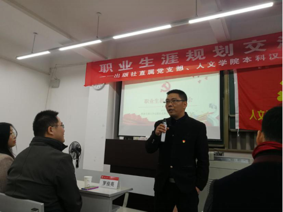 出版社直属党支部在X8215举办了职业生涯规划交流会。交流会结合校友的职业发展案例,介绍了色花堂
