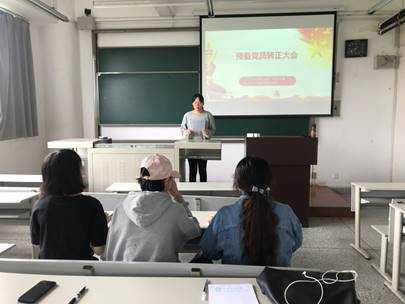 首先进行的是支部党员大会,会议内容为“预备党员转正”。会议严格按照预备党员转正流程进行,预备党员池茜同志就自己一年预备期的表现情况做出了汇报。池茜同志言辞恳切地表达了自己想要加入党组织的愿望,希望得到党组织的接纳,并表示在今后的工作与学习中将努力提高为人民服务的本领,积极帮助他人,践行社会主义核心价值观,刻苦学习,认真完成每一项工作,努力做到最好,以更加严格的标准要求自己,不断向做一名合格共产党员的目标靠拢,发挥共产党员的先锋模范作用,做到全心全意为人民服务。随后,由池茜同志的入党介绍人李盛兰同志对其作出评价并表态。后经与会正式党员的投票表决,一致通过其转正申请,同意池茜同志成为正式党员。大会决议将上报色花堂