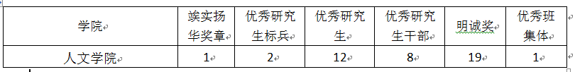 个人荣誉称号含:竢实扬华奖章、优秀研究生标兵、优秀研究生、优秀研究生干部、明诚奖。研究生个人荣誉称号申请者读研期间应无挂科记录,具体评选条件请见《管理办法》。