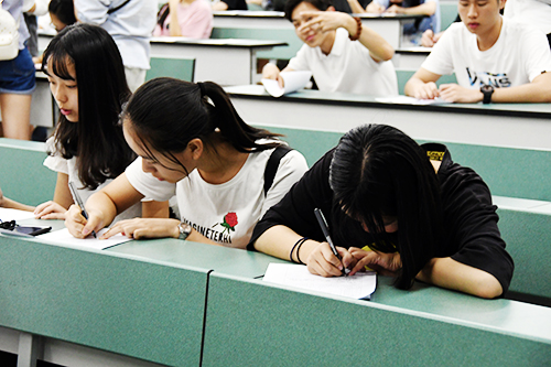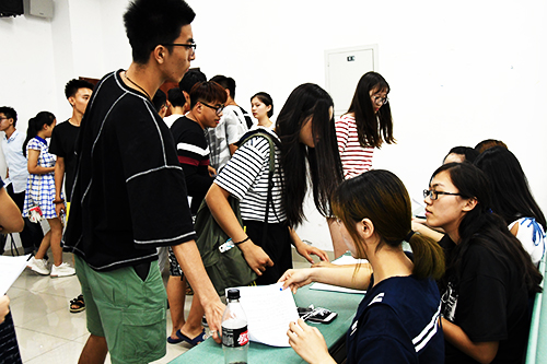 四大组织宣讲结束之后,新生们便开始着手填写手中的报名表,每位同学最多可以报名两个组织。与此同时,各组织部门成员也拉开了一场没有硝烟的战争,纷纷再次向新生们推荐自己的部门,场面火热。