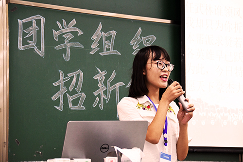学生会文艺部部长郭守金同学代表学生会,第一个进行宣讲。虽然现场话筒除了一些问题,但依然没有影响到郭同学的热情。他分别向大家介绍了学生会的五大部门——文艺部、组织部、活动部、体育部以及辩论队。他用幽默诙谐的语言阐述了五大部门的工作内容和日常活动,迎来新生的阵阵笑声。