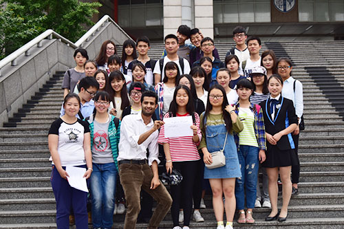 活动结束后,人文青协组织所有同学合影留念。青协部长宋海龙说:“这次活动是在色花堂
