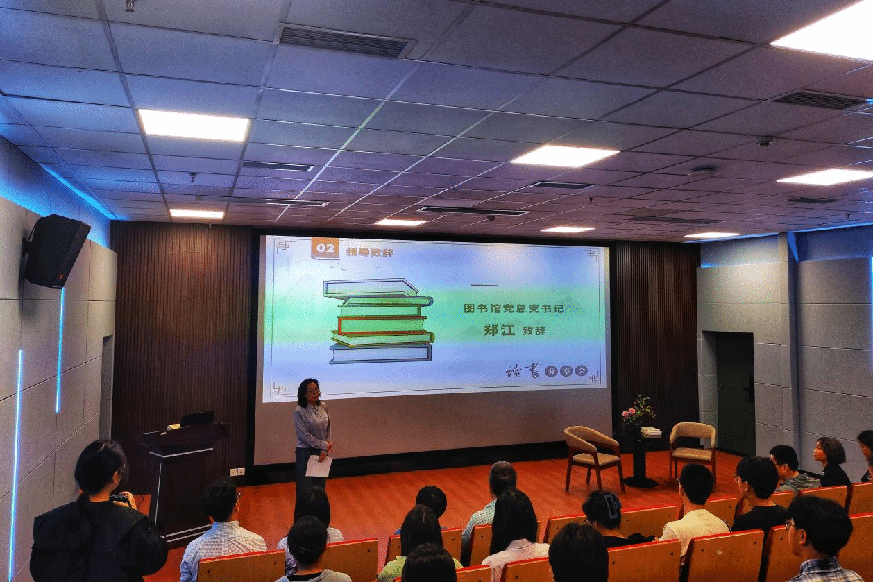 活动伊始,图书馆党总支书记郑江致辞。她首先欢迎彭小华博士的到来,接着为现场观众介绍了彭小华博士《学会告别》等专著和《最好的告别》(第十一届文津奖获奖作品)等译作,同时介绍到彭小华博士是一位有丰富学习、工作、生活阅历,一个把人生挑战视为功课,考出满意成绩的人。希望读者和现场观众,能从彭小华博士的讲座中,找到解决不安、内卷、焦虑的智慧锦囊,指引活出真实、安宁和喜悦的自己。
