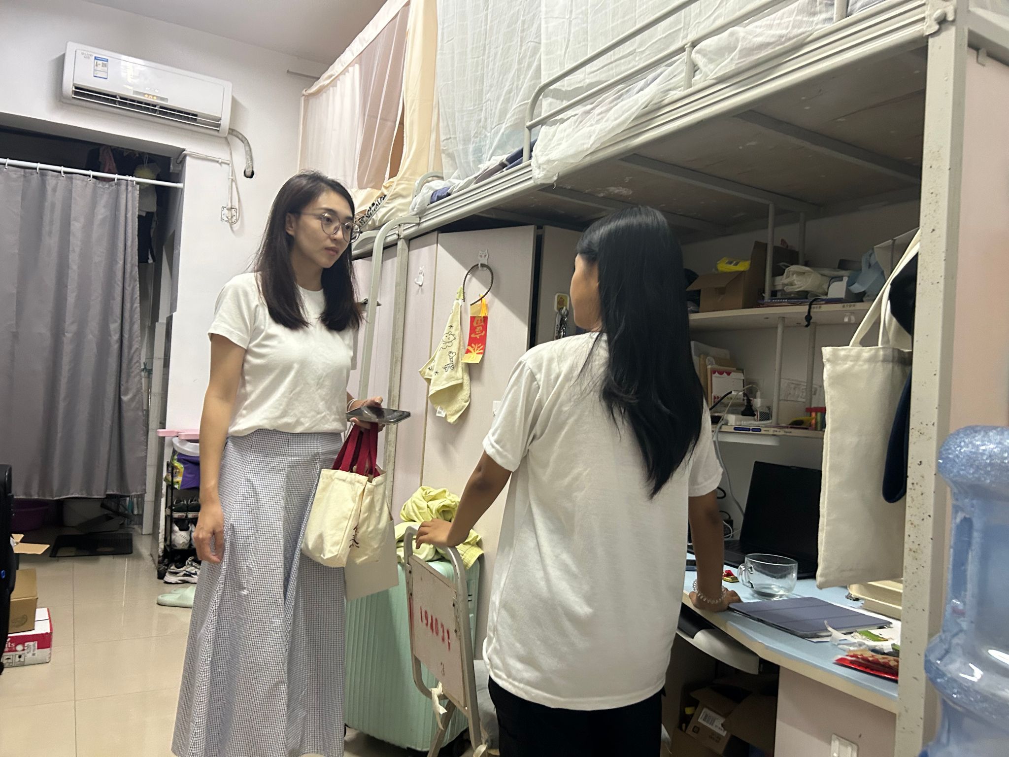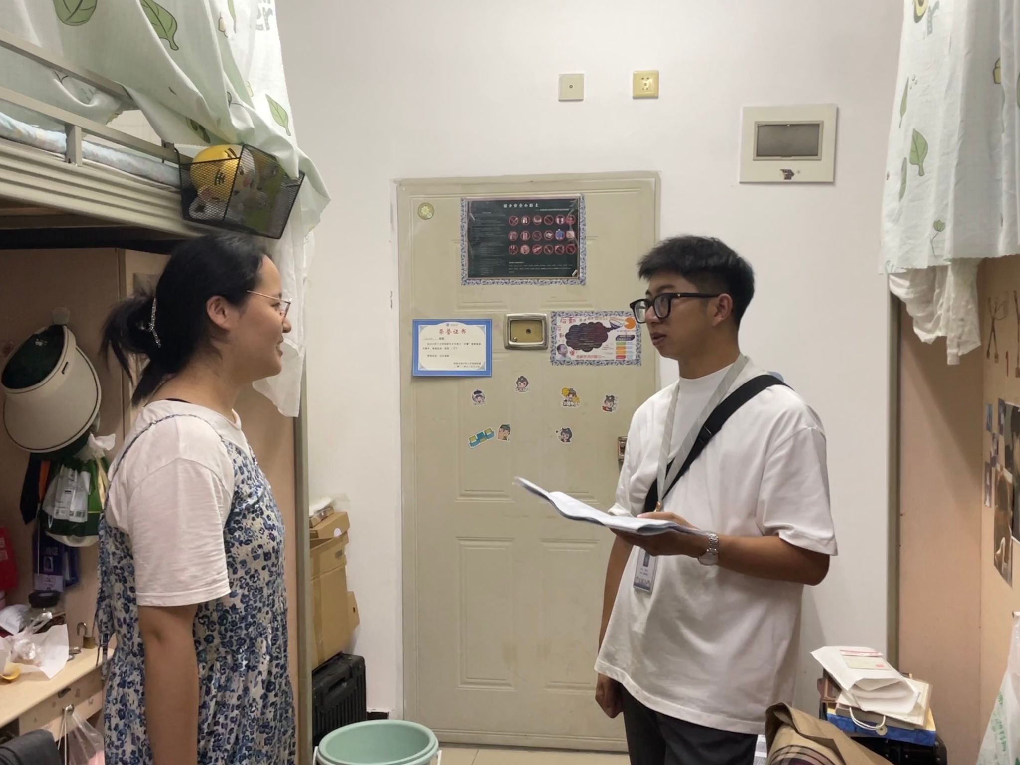 本科生辅导员刘晗悦、周桎宏、罗乔美老师深入学生宿舍,开展细致的安全检查和关怀慰问。老师们逐一对学生的生活状况、学习进展进行了询问了解,并特别关注了学生的中秋假期安排。此外,老师们强调了宿舍用电安全、消防安全的重要性,提醒学生注意网络安全和个人健康防护。并及时提醒同学们调整个人状态,积极回归新的学习生活。
