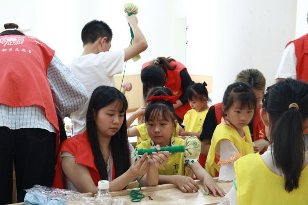 在实践环节中,志愿者带领孩子们亲手制作艾草锤。从填充艾草、揉捏定型到缠绕棉线,孩子们在志愿者的指导下逐步完成制作步骤,现场洋溢着欢声笑语。一只只小巧精致的艾草锤不仅让孩子们体验到传统手工艺的乐趣,更成为传递健康与祝福的载体。活动结束后,孩子们兴奋地表示要将亲手制作的艾草锤带回家送给长辈,传递孝心与温暖。