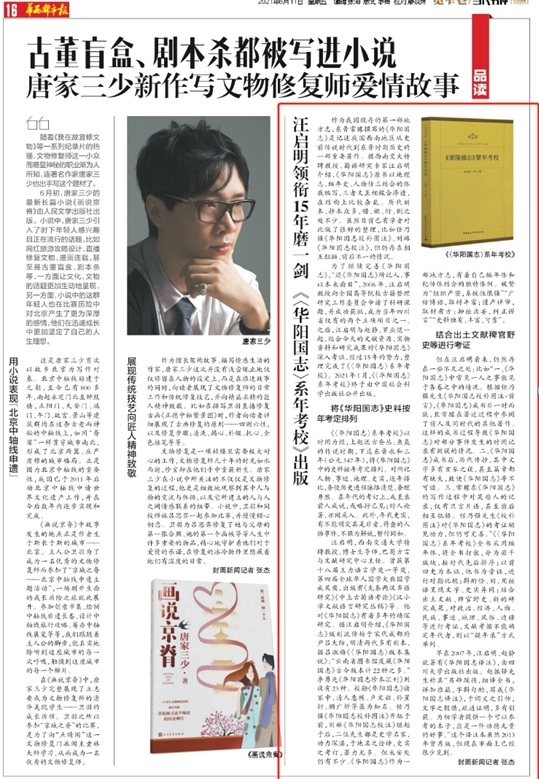 《华西都市报》报道我院汪启明教授等著《〈华阳国志〉系年考校》出版情况