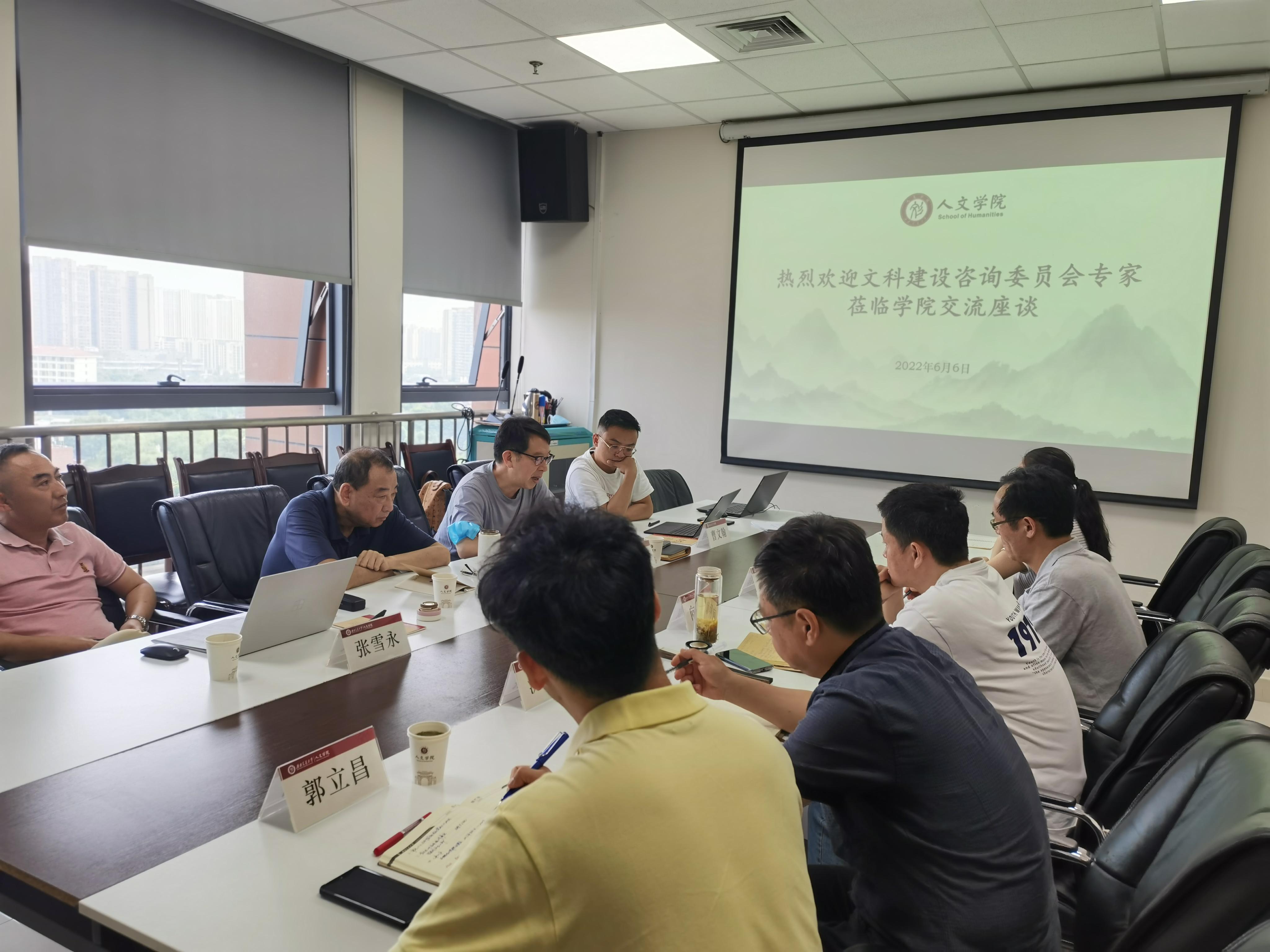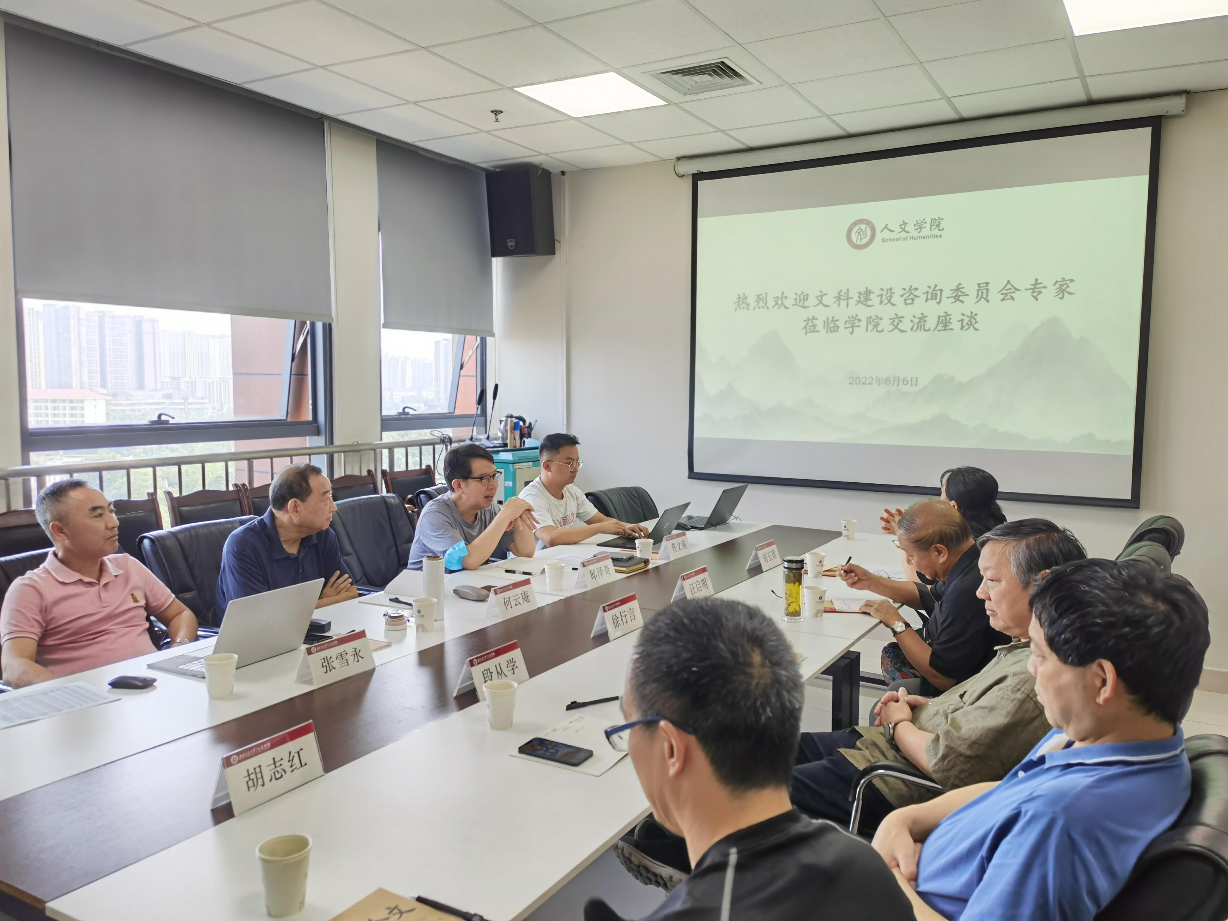 2022年6月6日下午14:30分,学校文科建设咨询委员会主任邱泽奇、委员何云庵,文科建设处处长张雪永、科长曹文翰莅临我院,调研中国语言文学一级博士点建设与发展情况。学院领导班子及中国语言文学博士生导师们参加了调研交流。