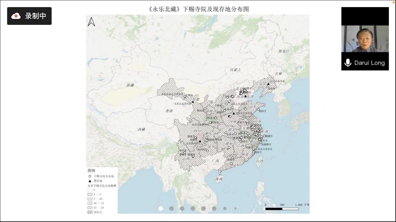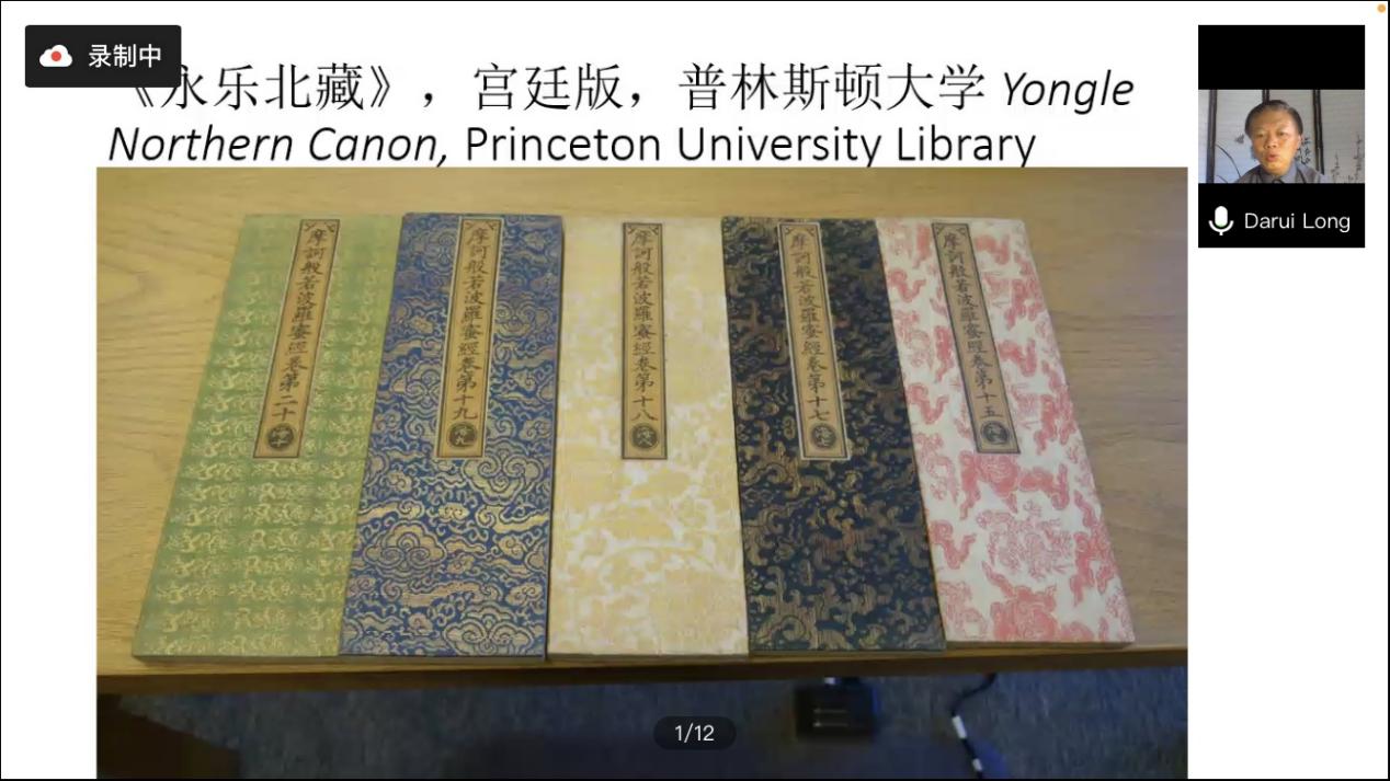 最后,龙教授谈到自己对《永乐北臧》的研究,从最开始对普林斯顿大学东亚图书馆保存的《永乐北藏》的研究,到对其他单位收藏的《永乐北藏》进行调查,龙教授走访了中国、美国与波兰的20余家图书馆、博物馆和寺院,拍摄了数万张藏经的照片,填补了相关领域的空缺,为听众提供了宝贵的调查经验,与会师生受益匪浅。
