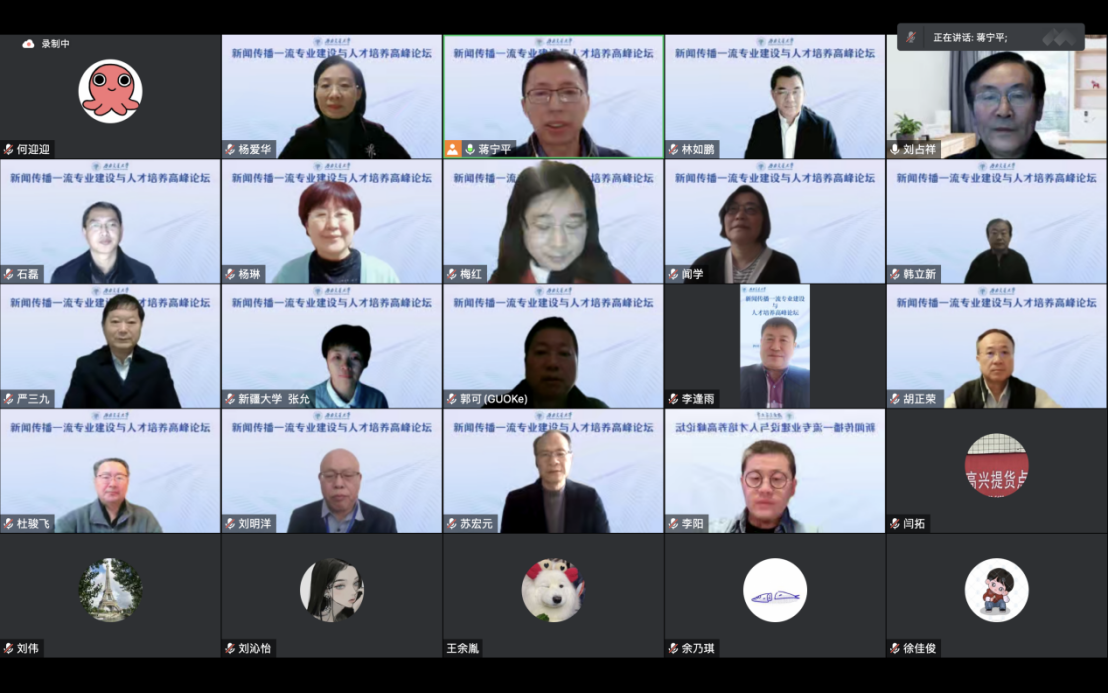 主办的“新闻传播一流专业建设与人才培养高峰论坛”正式举行,各校新闻传播专业专家教授共聚云端,探讨新闻传播一流专业建设和卓越新闻人才培养。