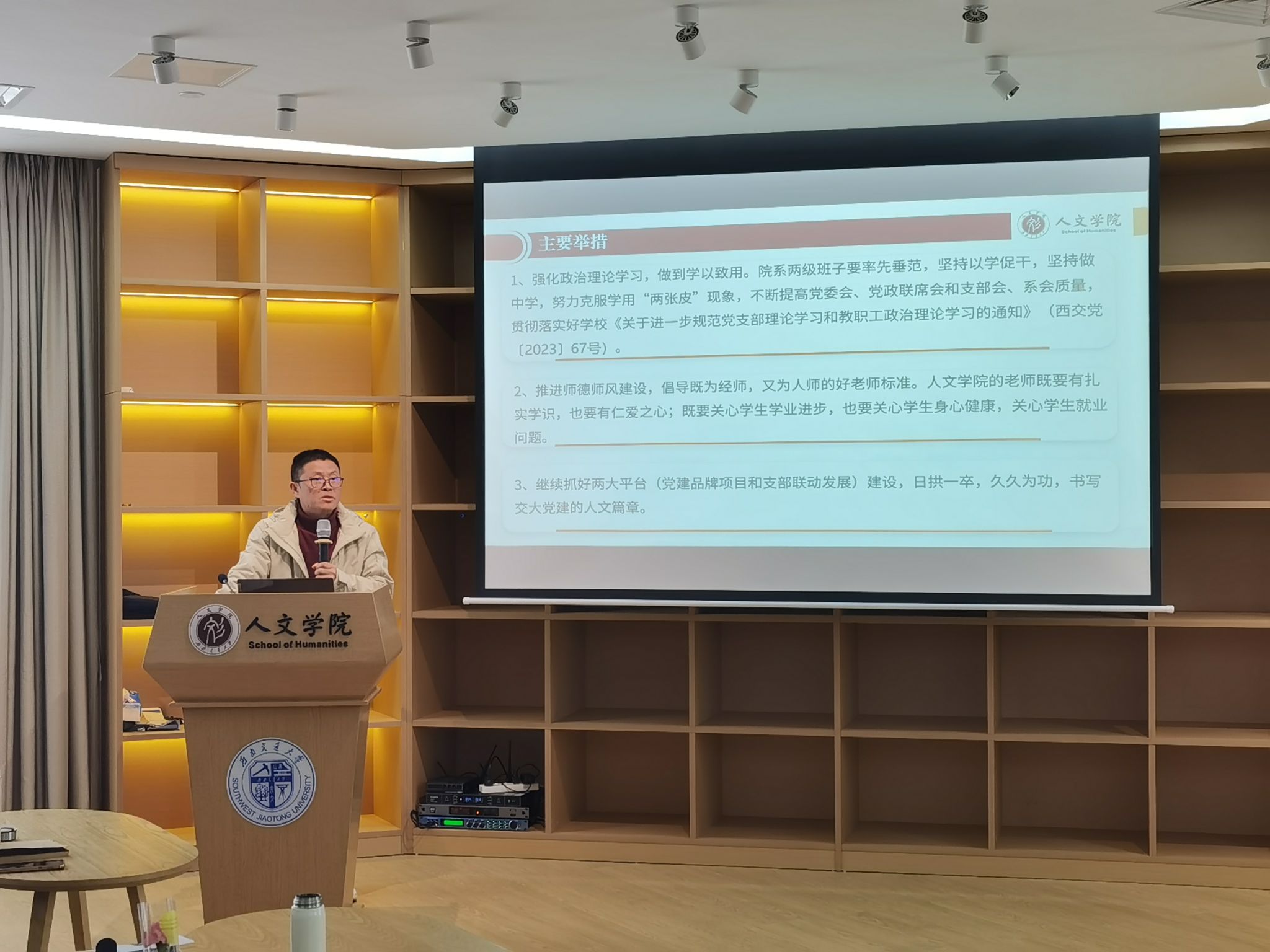 副院长沈如泉介绍了学院博士后流动站的招聘及建设情况。他指出,新学期学院将加强有组织科研工作的部署和指导,为老师们申报项目、组建团队提供支持和帮助。随后他带领大家学习《色花堂