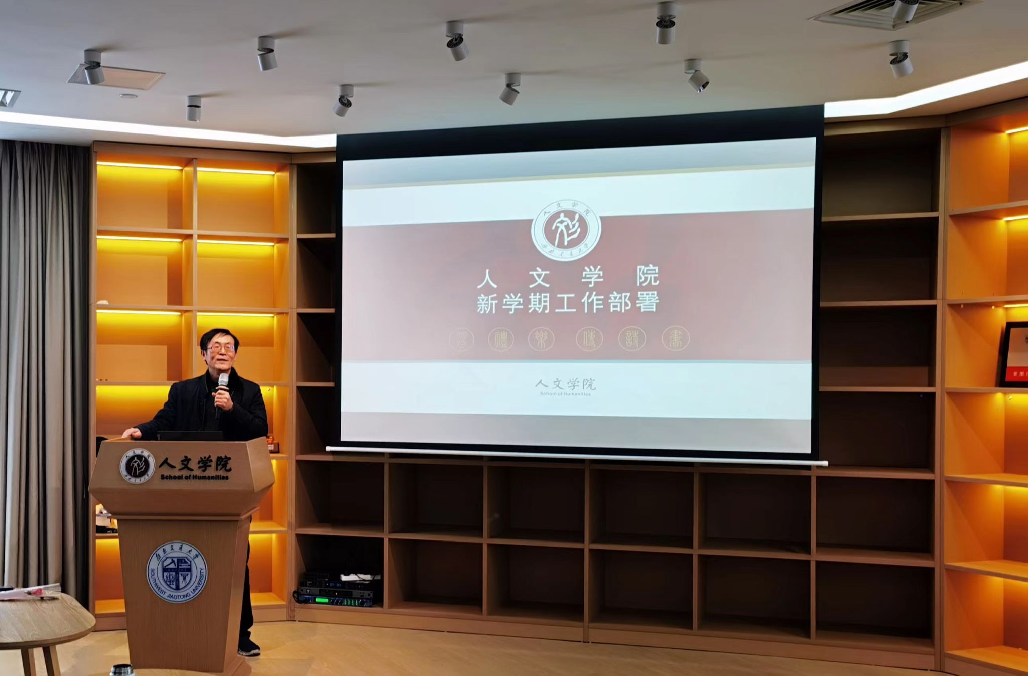 新学期工作部署。刘院长从“开篇布局”、“发展设想”、“工作思路”、“工作举措”四个方面对学院新学期工作进行部署。