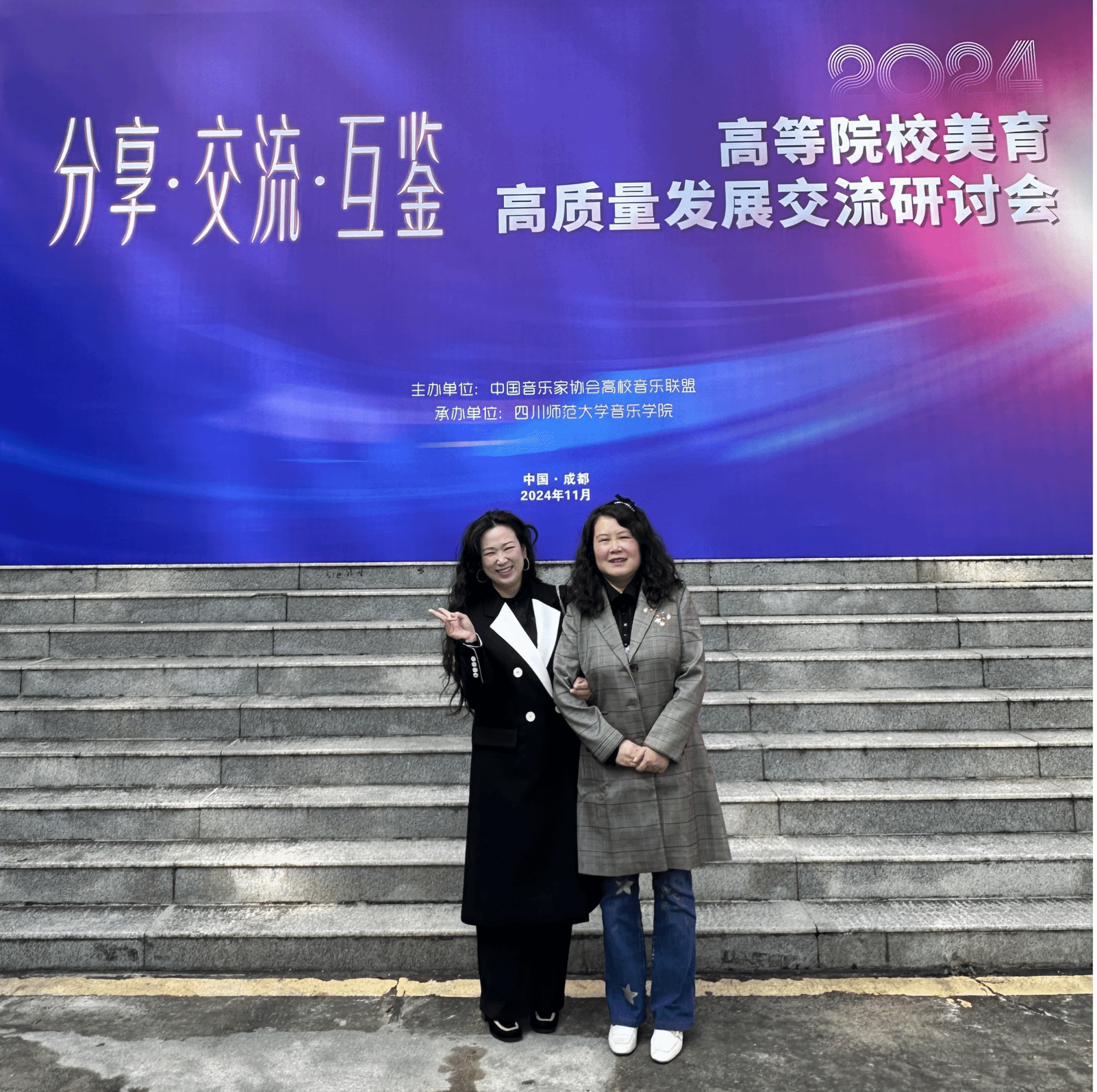 2024年11月5日,为深入贯彻落实习近平总书记对学校美育的重要指示批示精神、《教育部关于全面实施学校美育浸润行动的通知》等文件精神,切实加强和推进新时代学校美育改革发展及高质量建设,聚焦高校美育教育发展,共同探索美育教学方法与实践路径,进一步提升高校美育教师教育教学能力,高等院校美育高质量发展交流研讨会于四川师范大学盛大举行。我校教师李珊、肖蓓,研究生毛艺霖、李柯志参加会议。