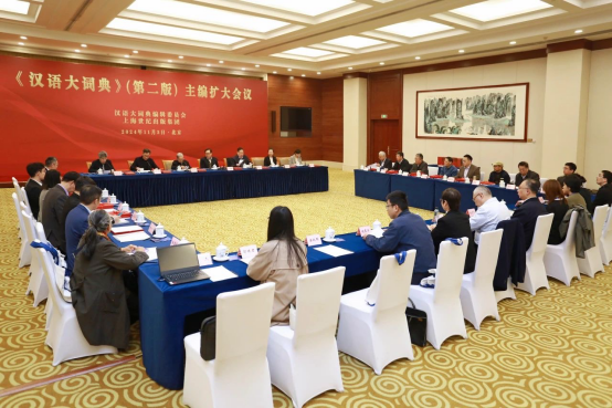 近日,《汉语大词典》(第二版)主编扩大会议在国务院第二招待所会议厅召开。会议旨在梳理总结前一阶段工作,安排合卷本工作的各项事宜,并初步谋划《汉语大词典》的中长期发展。十一届全国人大常委会副委员长、《汉语大词典》(第二版)主编华建敏同志,中国辞书学会会长李宇明教授,《汉语大词典》(第二版)副主编蒋绍愚教授,国家出版基金规划管理办公室副主任刘兰肖同志,中共上海市委宣传部出版处处长毛小曼同志,以及新增补的副主编、分册主编、编委代表出席会议。会议由上海世纪出版集团党委委员、副总裁毛文涛同志主持。