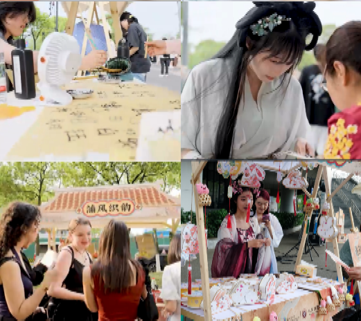 辅导员刘晗悦、周桎宏、文璐、罗乔美、朱思颖、靳钰涵等老师到场参与活动。本次活动分为传统文化集市展示与体验、传统文化文艺汇演两个版块。活动现场热闹非凡,吸引了众多师生现场参与。