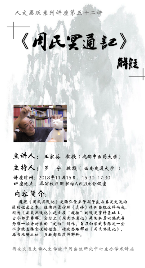 【主讲人简介】王家葵,四川成都人,医学博士,成都中医药大学药理学教授,研究涉及本草文献、道教历史、书法艺术等领域。主要著作有《神农本草经研究》(北京科技出版社,2001),《陶弘景丛考》(齐鲁书社,2003),《近代印坛点将录》(山东画报出版社,2008),《近代书林品藻录》(山东画报出版社,2009),《登真隐诀辑校》(中华书局,2011),《真灵位业图校理》(中华书局,2013),《养性延命录校注》(中华书局,2014),《唐赵模集王羲之千字文考鉴》(中华书局,2016),《玉吅读碑》(四川文艺出版社,2016),《本草纲目图考》(科学出版社,2018)等。