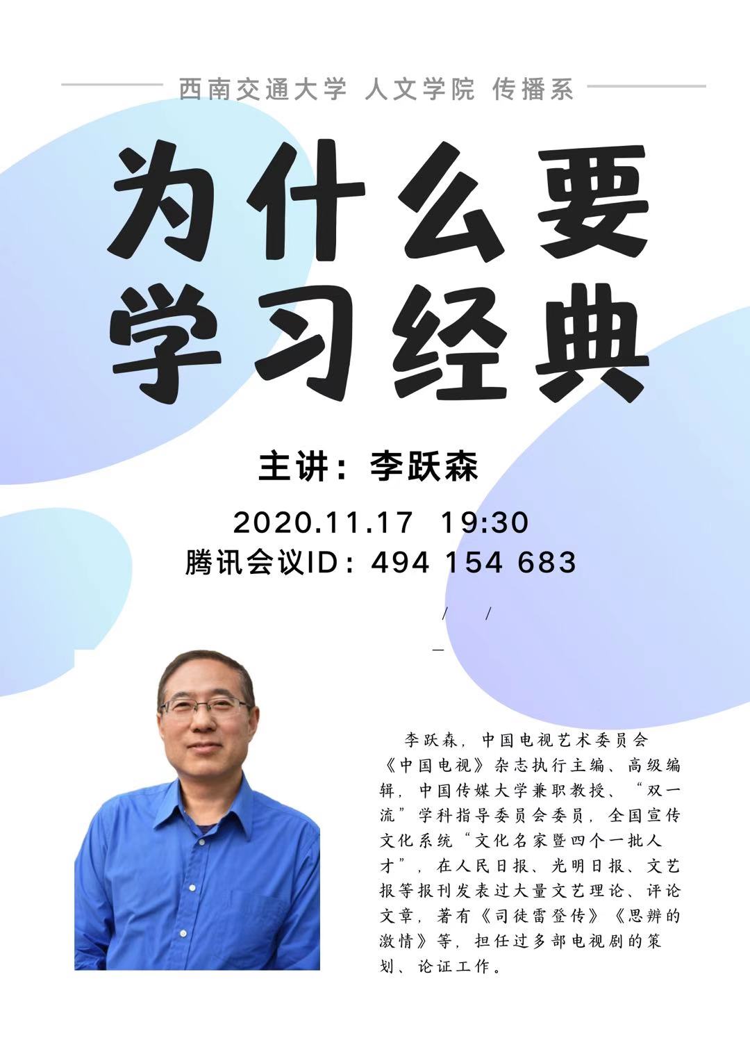 讲座时间:2020年11月17日(周二) 晚上19:30