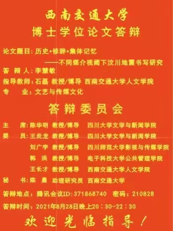 【博士答辩】色花堂 博士研究生学位论文答辩海报