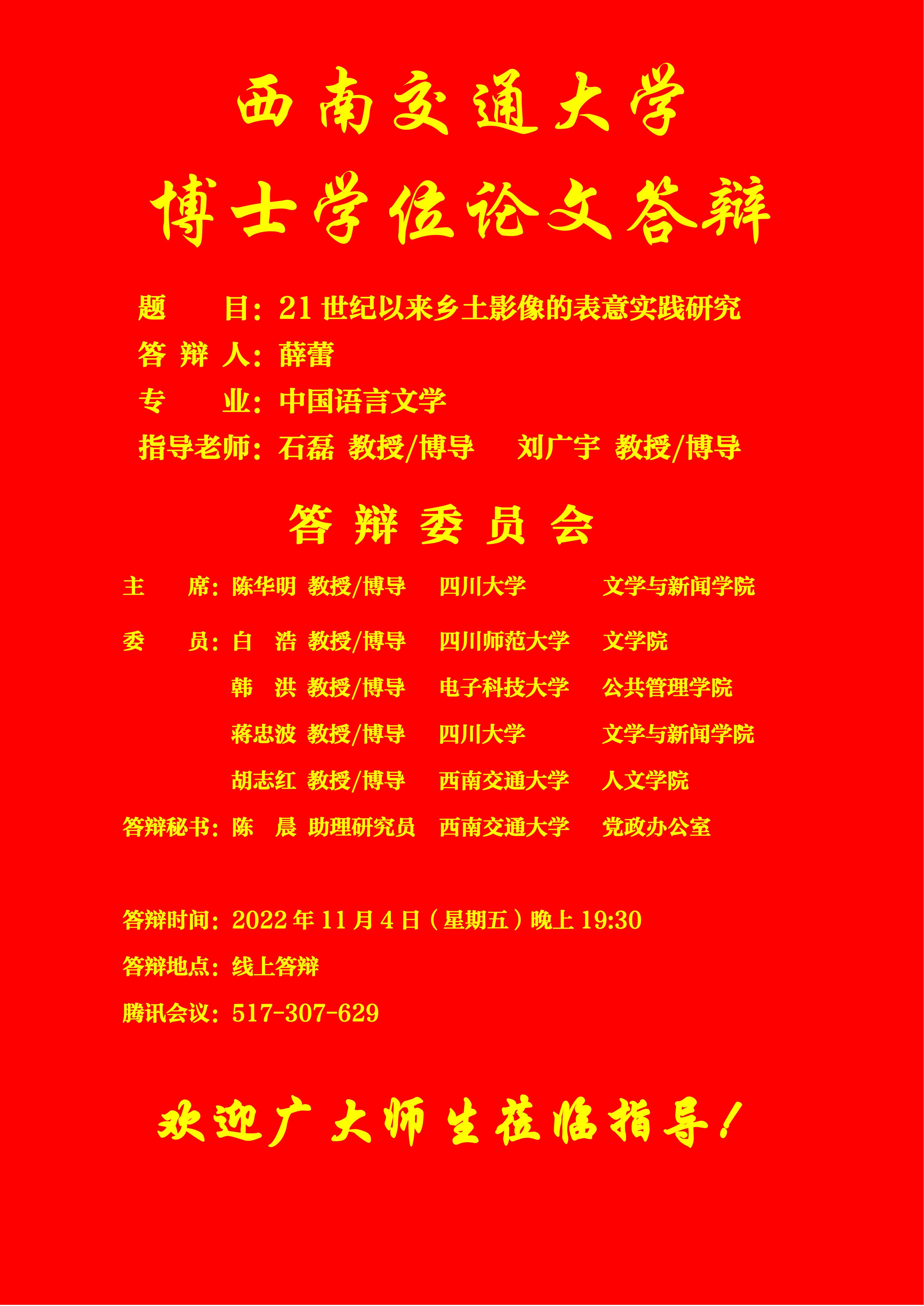【博士答辩】色花堂 博士研究生学位论文答辩海报