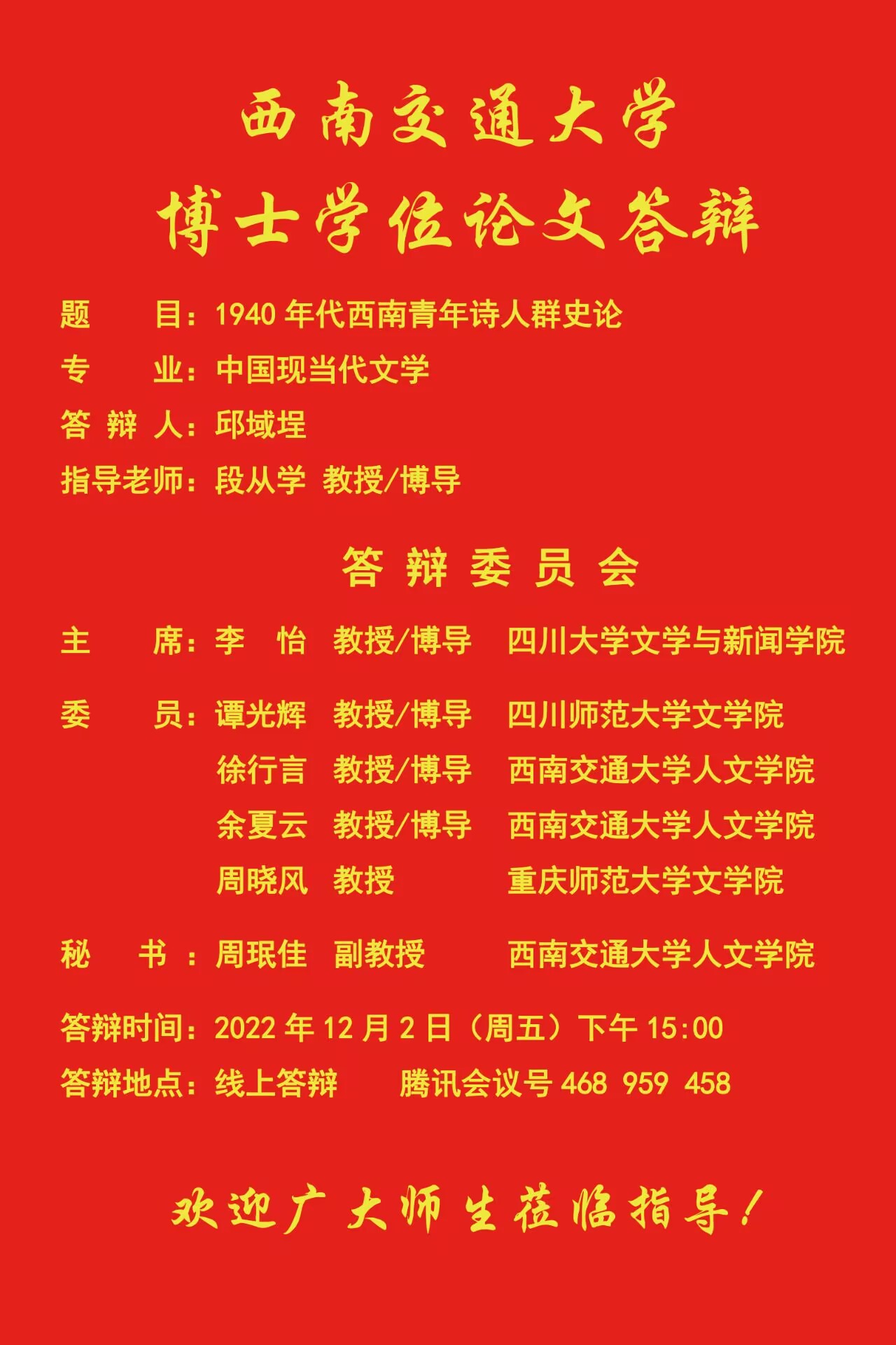 【博士答辩】色花堂 博士研究生学位论文答辩海报
