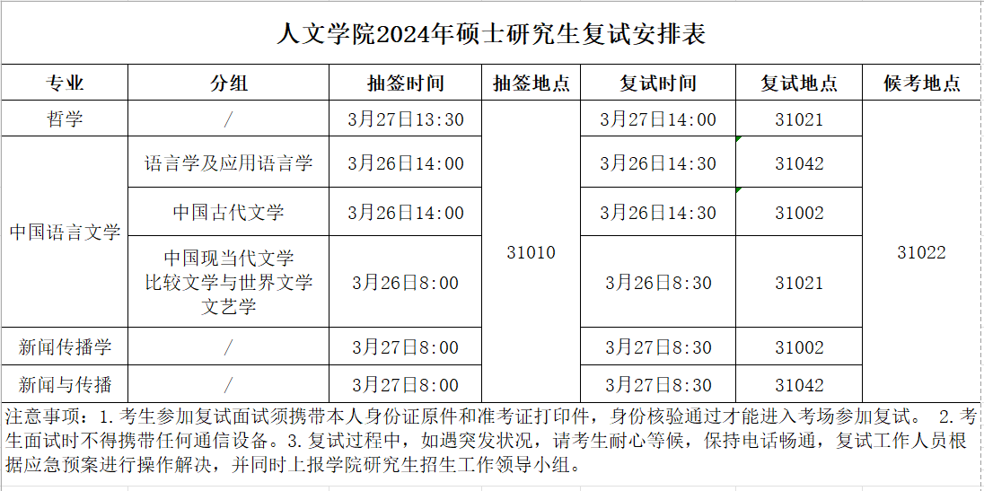 【硕士研究生招生】色花堂 2024年硕士研究生复试安排表