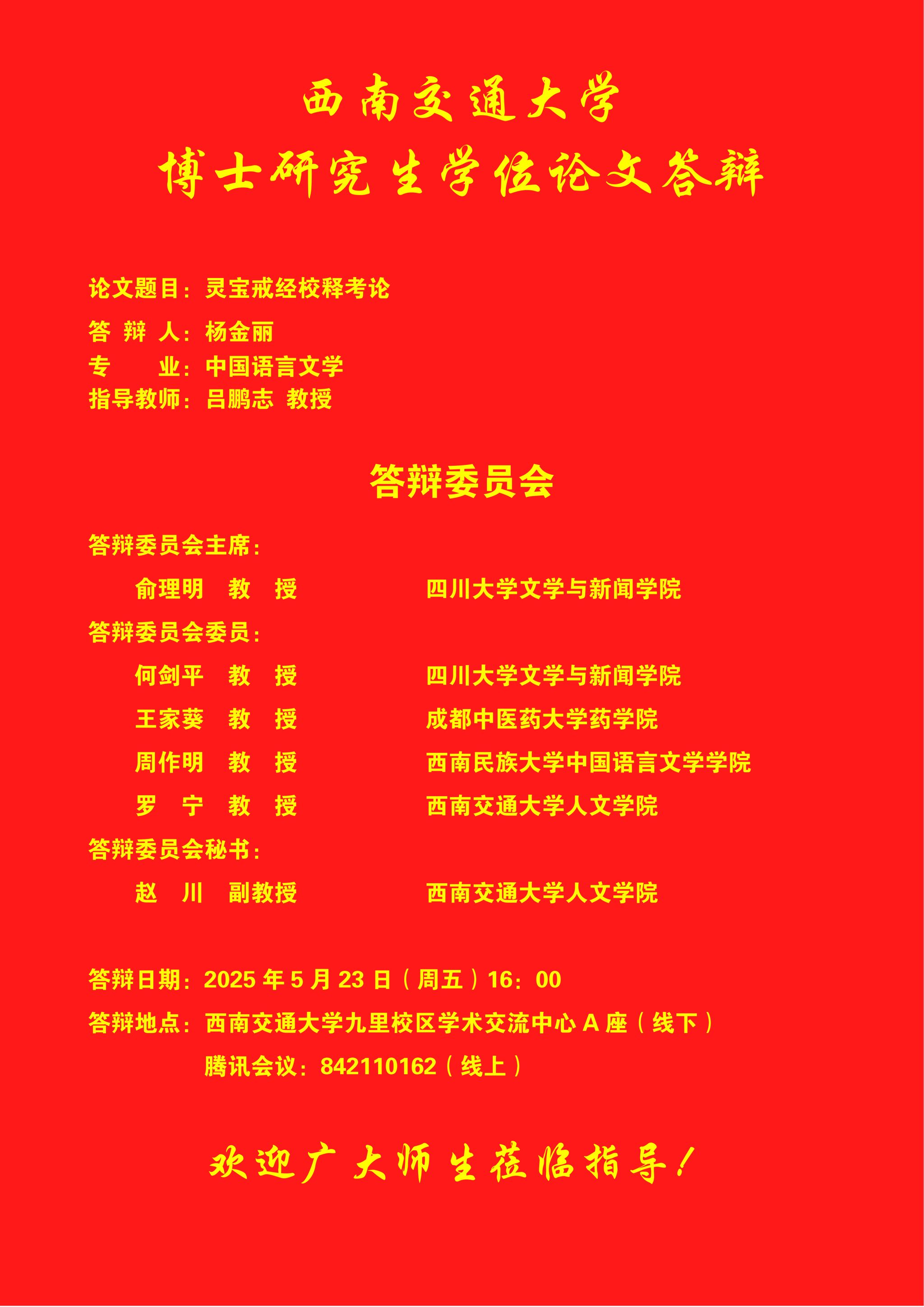 【博士答辩】色花堂 博士研究生学位论文答辩海报