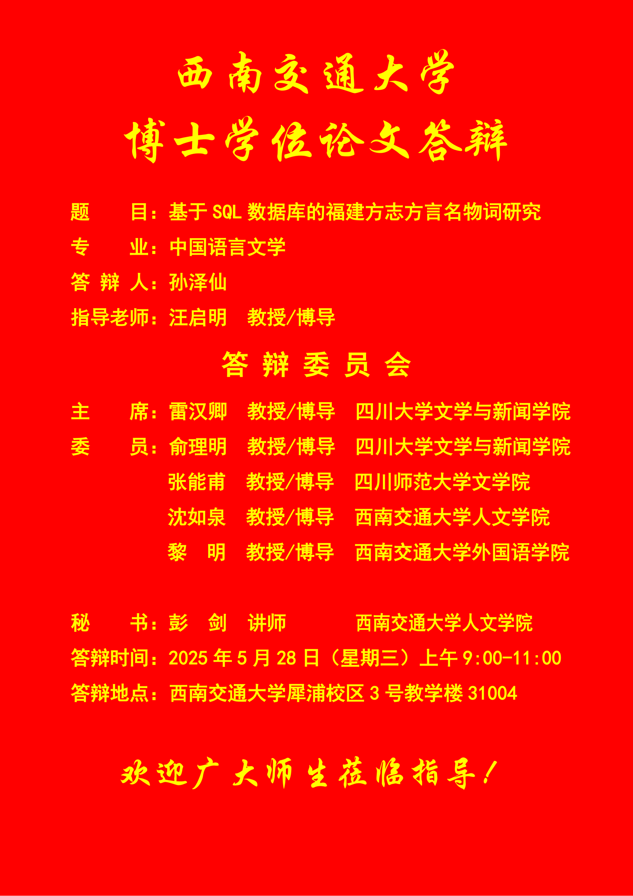 【博士答辩】色花堂 博士研究生学位论文答辩海报