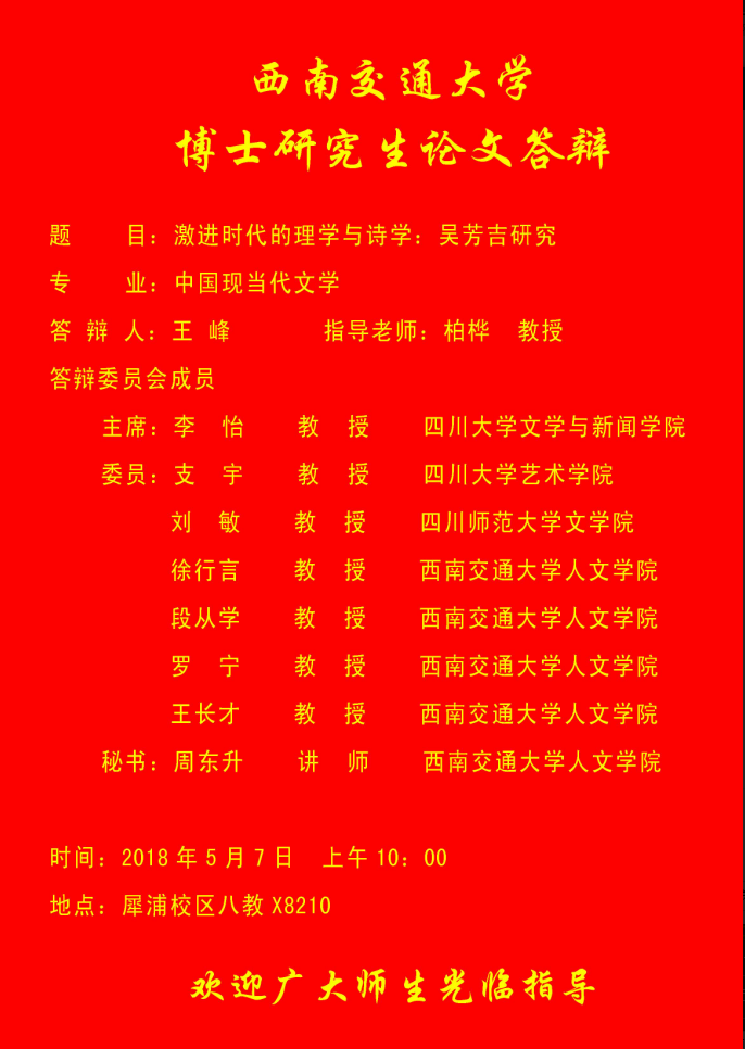 色花堂 博士研究生论文答辩公告