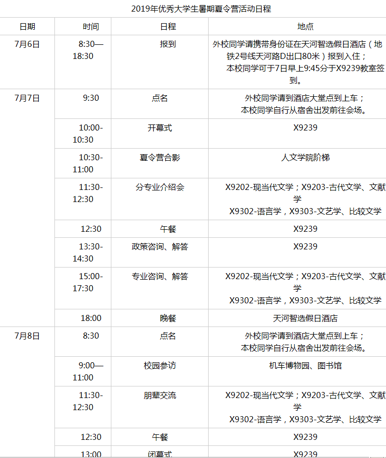 中文系2019年优秀大学生暑期夏令营活动通知