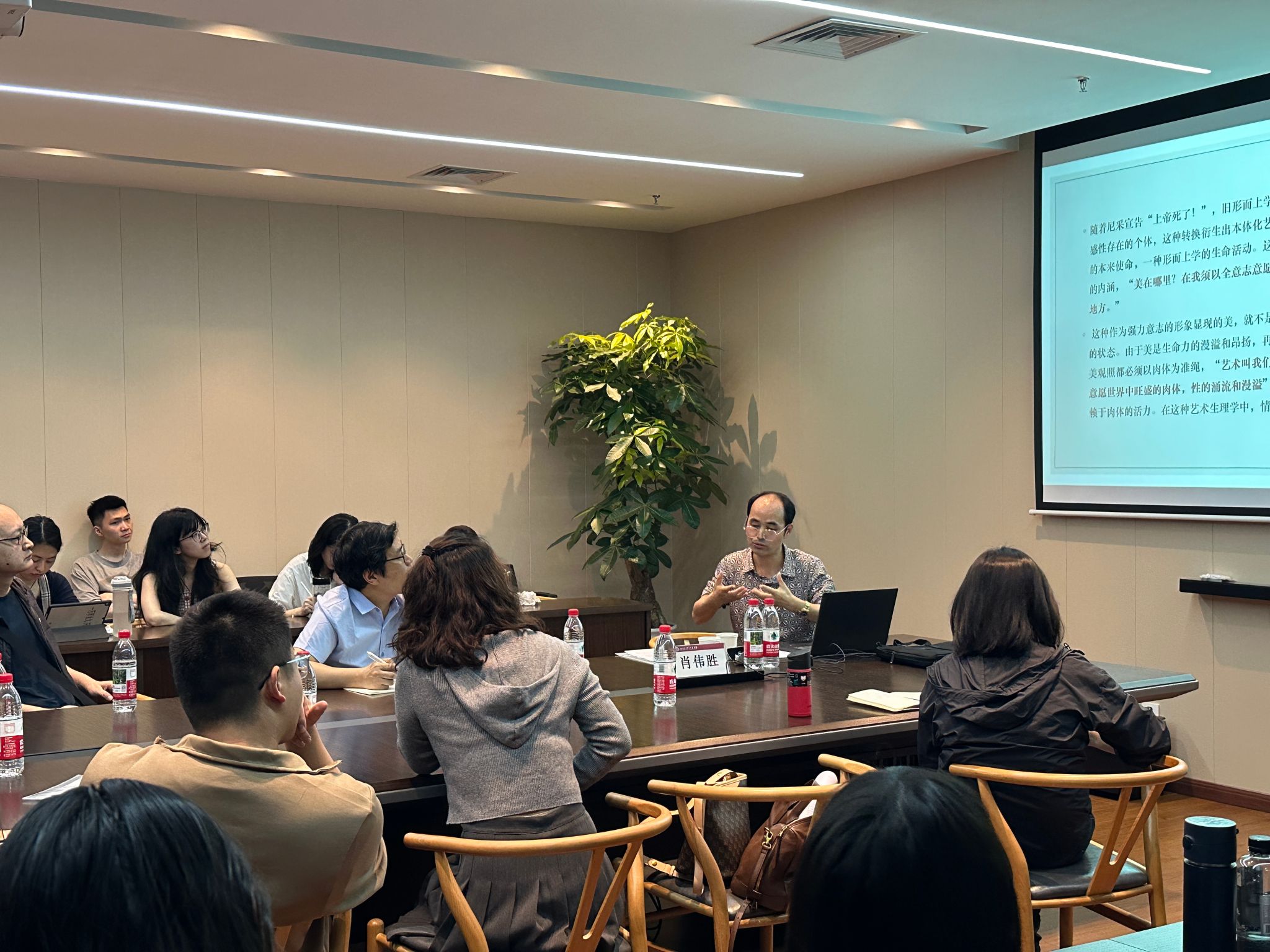 肖伟胜教授“杜尚艺术的审美现代性及其审美政治学”讲座成功举办2025年4月17日,四川大学文学与新闻学院教授,博士生导师,奥地利克拉根福大学客座教授肖伟胜老师应邀莅临我院,以“杜尚艺术的审美现代性及其审美政治学”为主题带来了一场精彩的讲座。讲座伊始,肖伟胜教授首先提出了一个问题:文学研究者是否能够和如何介入艺术的研究?肖伟胜教授认为,观念艺术可以被称为艺术中的“语言学转向”,艺术从传统意义上的纯粹审美性事物转换为思想观念的表达,这为文学研究者介入艺术研究提供了重要的现实“...